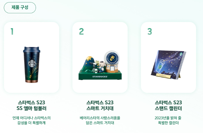 조금 특별한 제품을 원하시는 분들을 위해 이번에 소개할 제품은 갤럭시 s23 스타벅스 에디션입니다. 콜라보 에디션 제품이라 일반 스마트폰만 구매하시는 가격보다는 조금 더 비싸지만 그만큼 혜택과 특별함 구성품이 좋아 아는 사람만 알고 기다렸다가 구매하는 제품입니다. 대부분은 기간 한정보다 빨리 완판 되어 구매가 어렵고, 무엇보다 직접 개통하는 방식보다는 인터넷 구매가 대부분 이루어지기 때문에 조금 생소할 수도 있습니다. 이번 콜라보 에디션은 2023년 4월 1일까지만 판매가 되는 스페셜 상품입니다. 구성품으로는