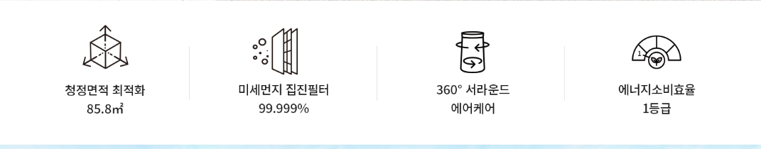 - 갤럭시 앱으로 조작가능 / 최대 123평까지 케어 가능 / 대화형 알림으로 간편한 조작 가능 / 4가지 색상 선택 가능