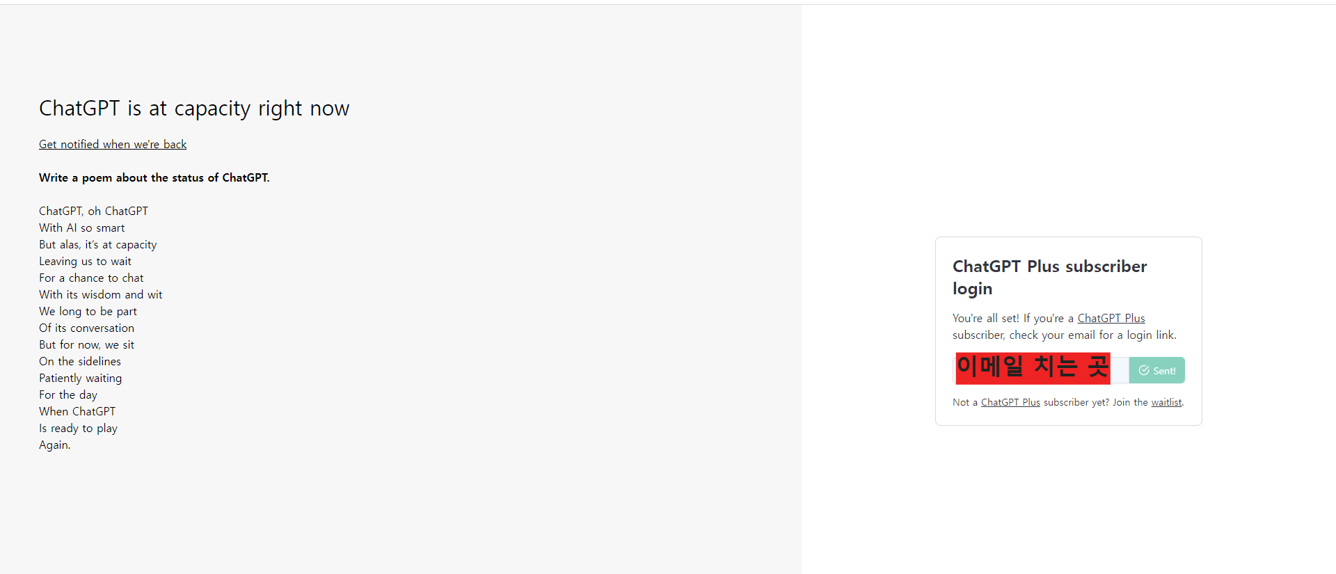 not a chatgpt plus subscriber yet? join waitlist라는 문구가 나오는데 "waitlist"라는 문구를 클릭하면 회원가입 창으로 넘어갑니다.