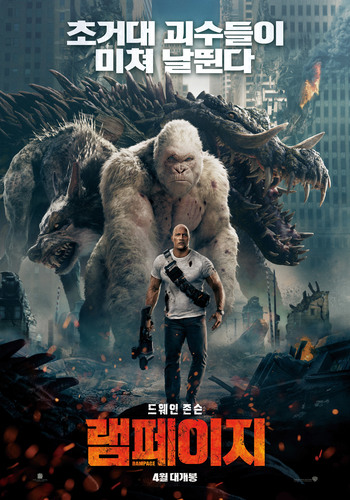 램페이지 제목과 예고편만 봐도 엄청나게 거대한 괴수들이 나와 도심을 파괴해버릴 것만 같은 영화이고 실제로도 맞습니다. 스토리는 전형적인 괴수물의 영화입니다. 다른 괴수 영화와 비교를 했을 때 이 영화는 주인공이 드웨인 존슨이라 보통 괴수 영화는 괴수라는 거대한 소재 때문에 주인공이 묻히는 게 십상이지만 드레인 존슨은 거대한 괴수들이 나와도 그분의 존재감은 전혀 묻히지 않았습니다. 하지만 다른 드웨인 존슨이 출연한 영화 보단 아무래도 조지라는 거대한 고릴라의 존재 때문에 덜 돋보기인 했습니다.