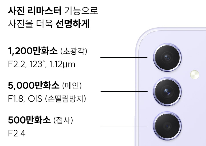 갤럭시 퀀텀 3에 비해 낮아진 카메라 화소 그리고 카메라 한 개 빠짐으로 써 전작에 비해 하향이 됬다고 생각하실 수 있습니다. 하지만 카메라 성능적인 면에서는 나쁘지 않습니다. 카메라 성능에는 5천만 화소 모드를 따로 적용을 할 수 있고, 자동 보정으로 색감 처리가 좋습니다.