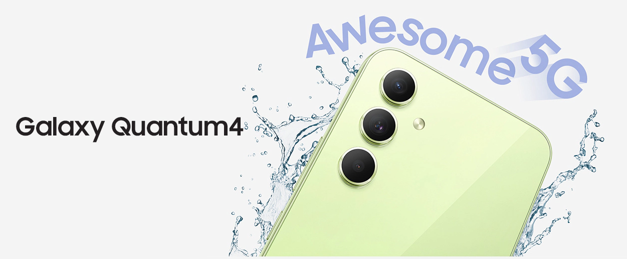 갤럭시 퀀텀 4 색상은 어썸 그라파이트, 어썸 라임, 팬텀 화이트 총 3가지로 출시가 되었습니다. 전체적인 디자인은 갤럭시 s23의 물방울형 트리플 렌즈형 디자인 후면 마감은 플라스틱 마감이 아닌 고릴라 글라스 5가 탑재되어 갤럭시 s23과 비슷한 고급스러운 느낌입니다.