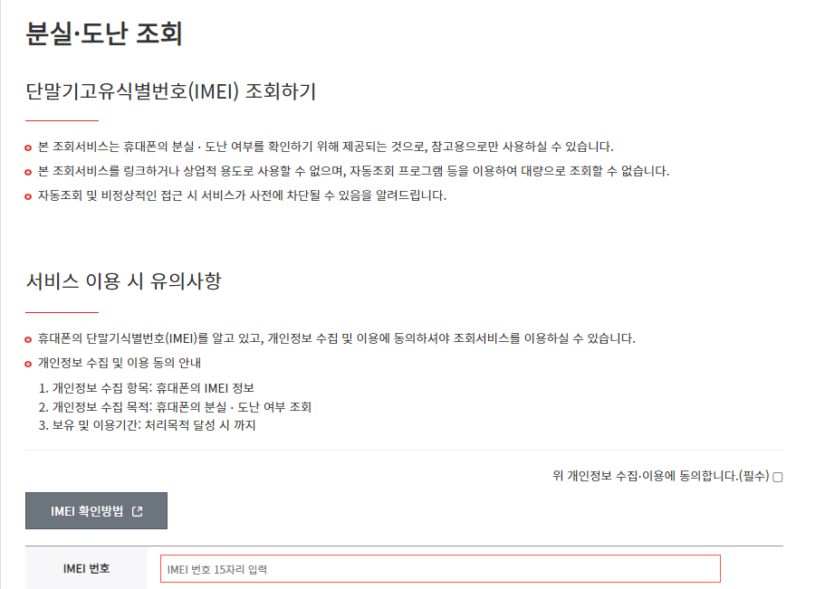 IMEI 분실폰 조회 사이트 바로 가기 (클릭)